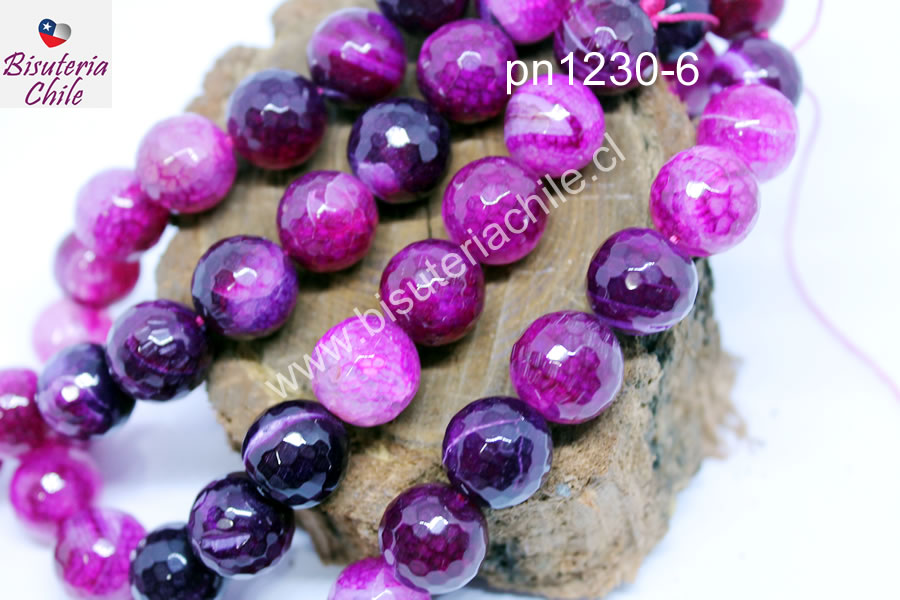 Agata 14 mm en tonos fucsias, tira de 13 unidades