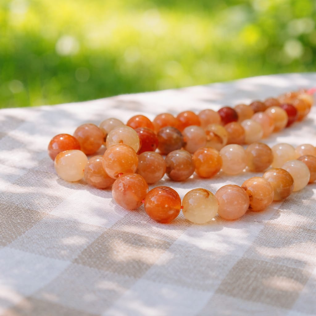 Agata de 10 mm, en tonos naranjos y crema, tira de 37 piedras aprox.