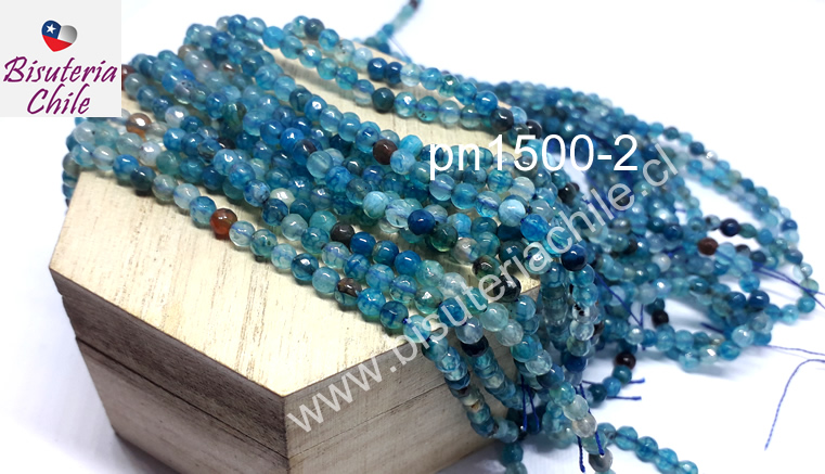 Agata de 4 mm en tonos azules, tira de 92 piedras