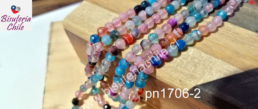 Agata de 4 mm en tonos celestes y rosados, tira de 92 piedras