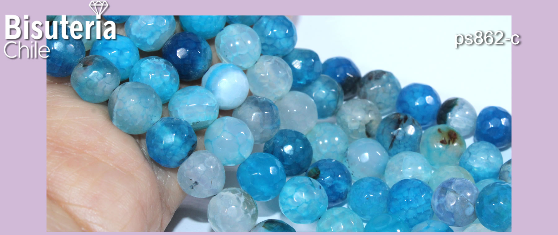 Agatas, Agata facetada en tonos azules de 8 mm, tira de 46 piedras apróx