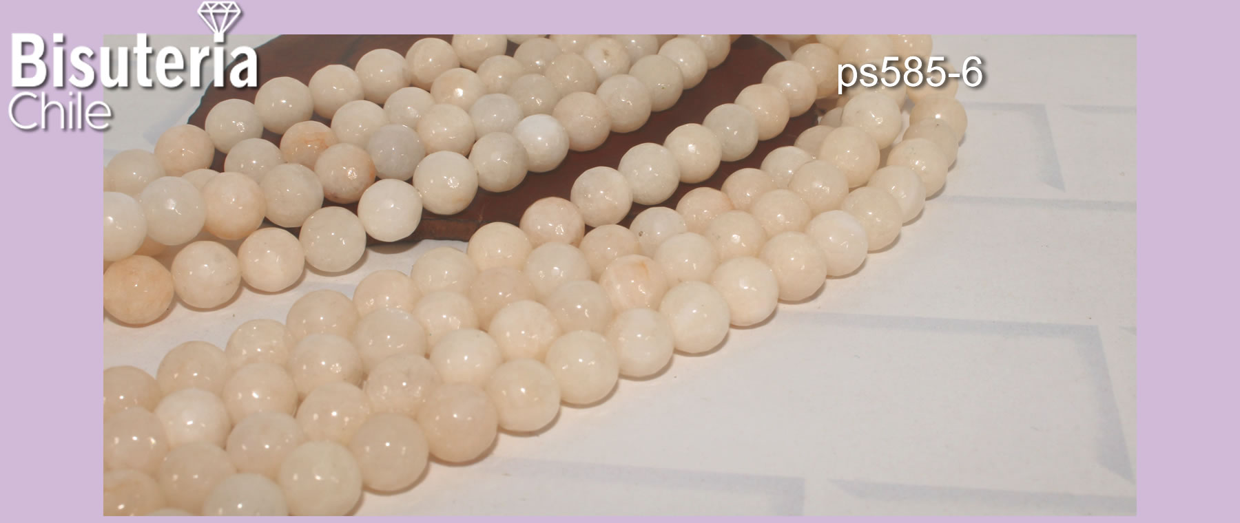 Agatas, Agata multicolor en tono crema, 8 mm tira de 46 piedras aprox