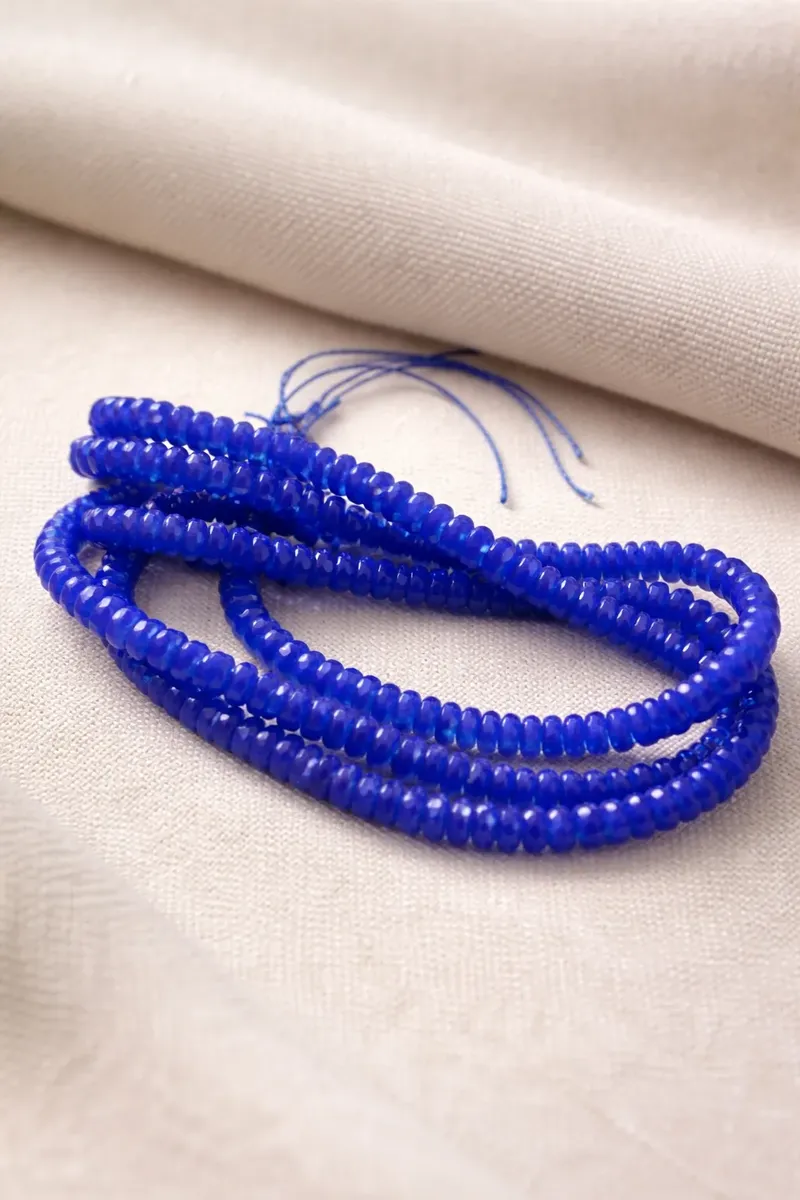 Agatas, Agata rondell azul medio de 4 mm, tira de 115 piedras aprox