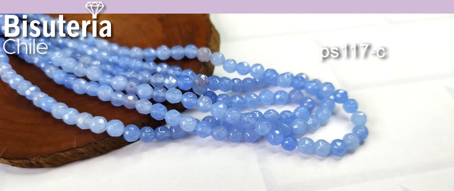 agatas en tono celeste en 4 mm, tira de 85 piedras aprox