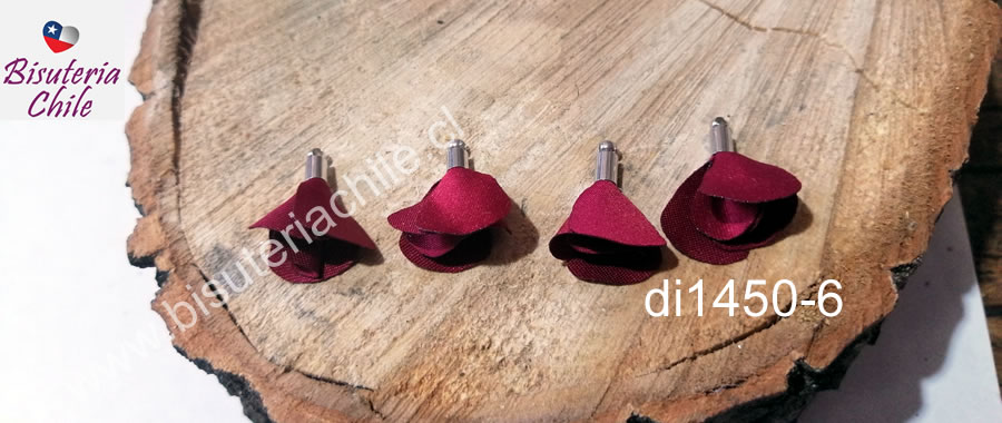 Borla de en forma de flor, color burdeo, en base plateado, 26 mm de largo x 13 mm de ancho, ser de 4 unidades