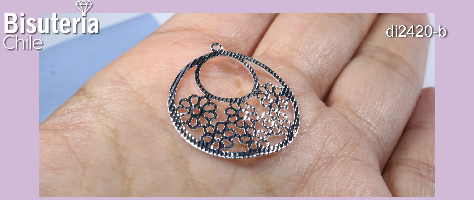 Colgante baño de plata delgado y con curvatura inferior, 25 mm de diámetro, set de 6 unidades (por mayor)