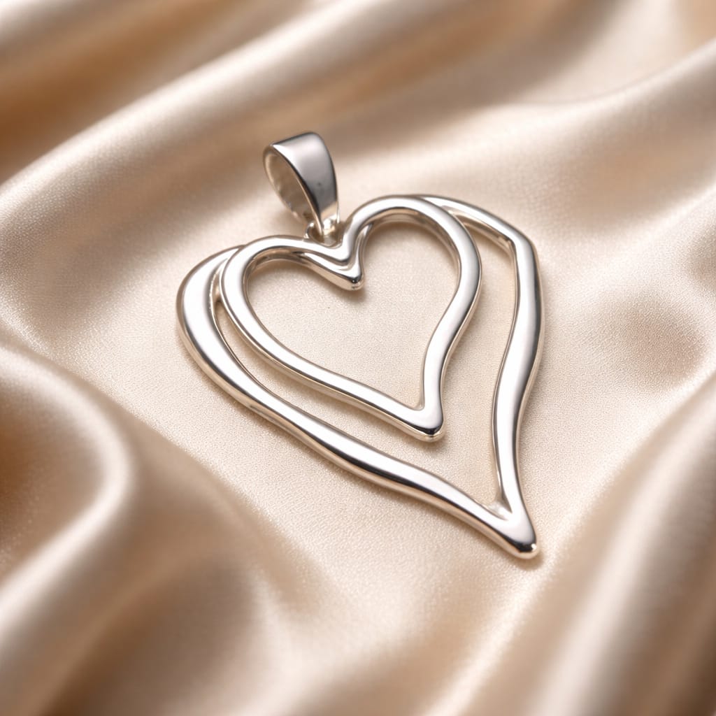 Colgante corazón baño de plata opaco, 63 x 50 mm, por unidad