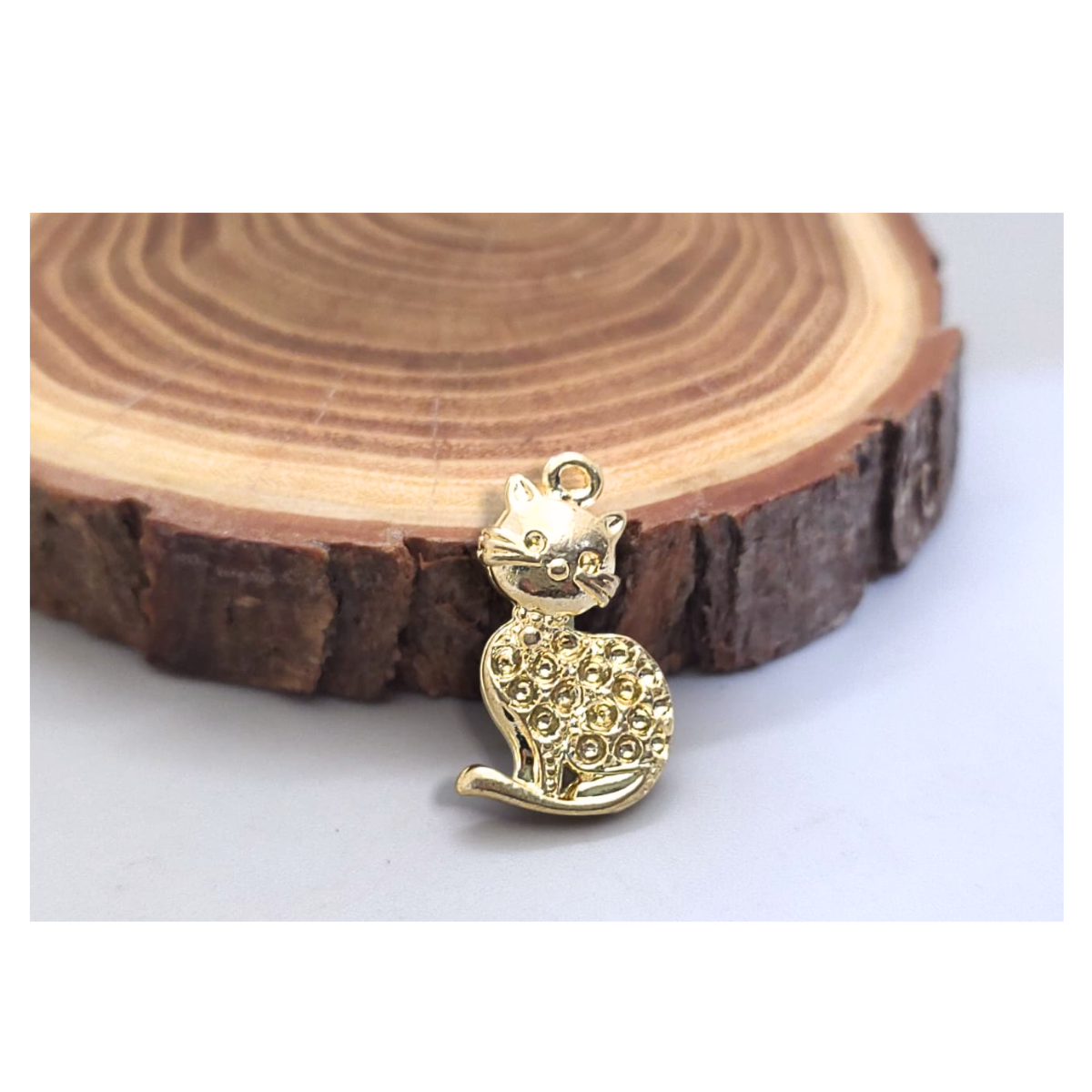 Colgante gato baño de oro, 25 x 16 mm, set de 6 unidades (por mayor)