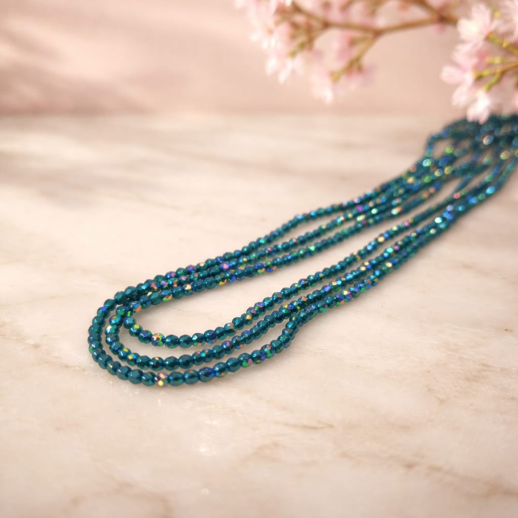 Cristal facetado 1.5 mm en color turquesa con brillos tornasol 195 cristales aprox