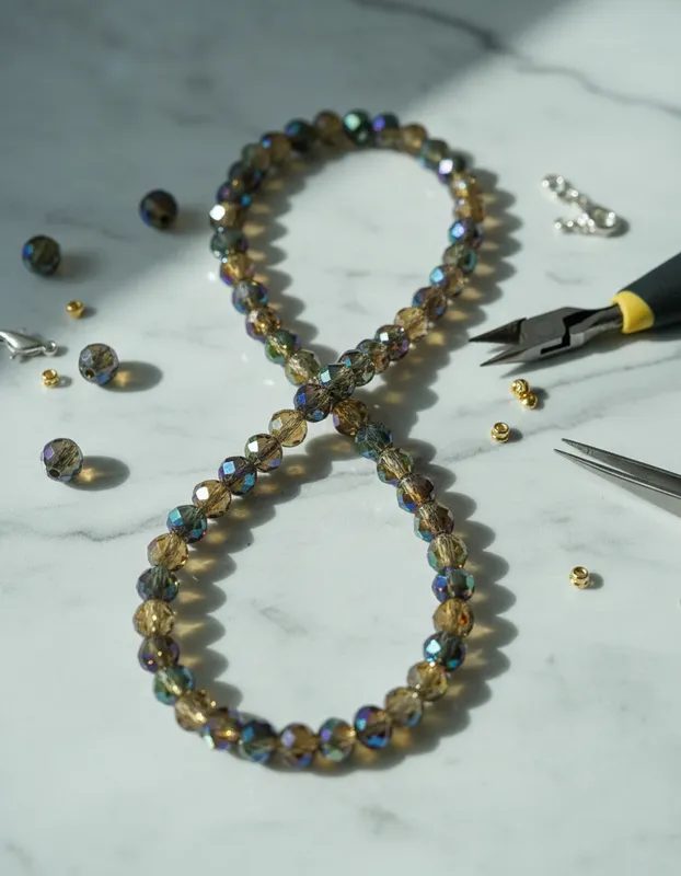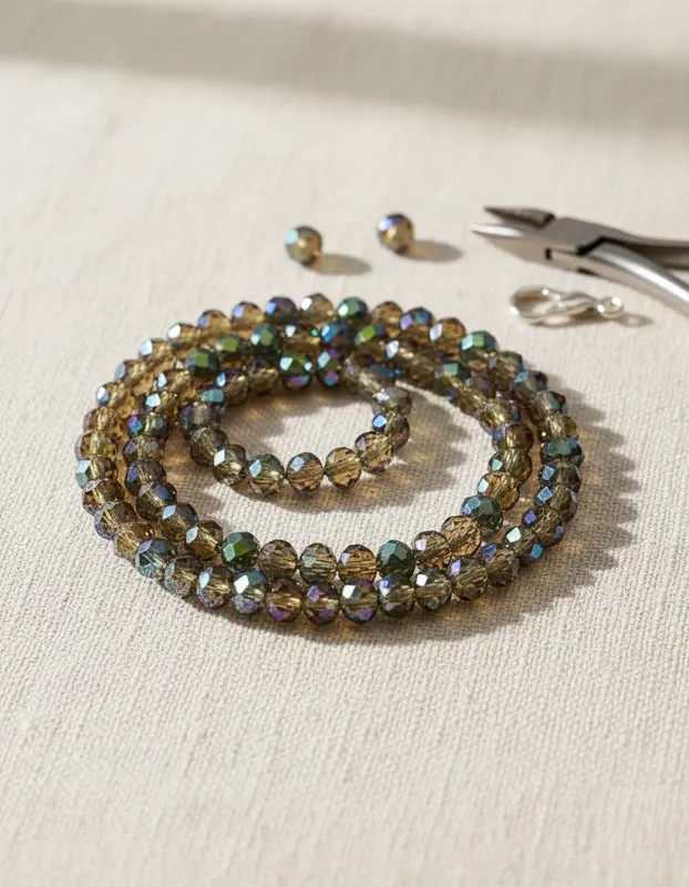 Cristal facetado de 6 mm, color verde t café tornasol, tira de 85 cristales aprox.