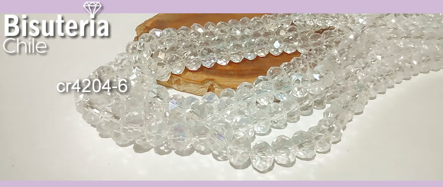 Cristal tornasol transparente, de 8mm por 6mm, tira de 69 unidades aprox