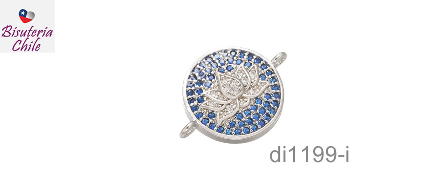 Dije flor de loto, plateado, doble conexión Zirconia Micro Pavé, excelente calidad, 13 mm.