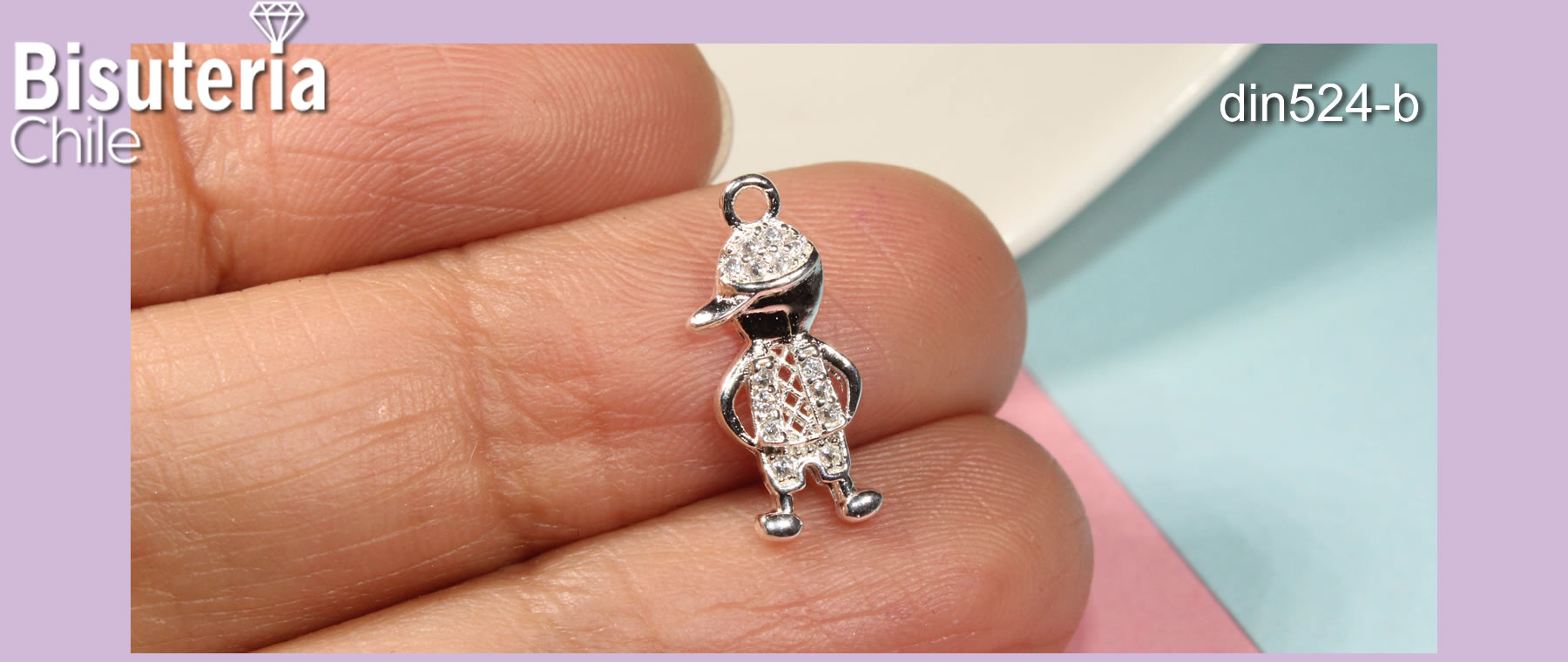 Dije niño baño de plata con circones, 17 x 7 mm, por unidad
