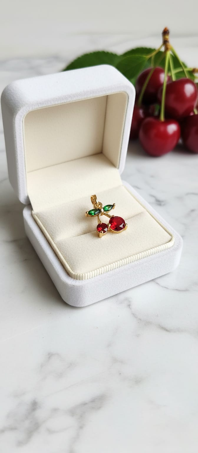 dije zirconita baño de oro, guinda, 15 x 11 mm, por unidad