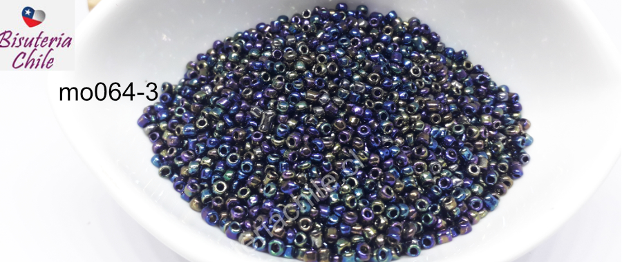 Mostacilla metalizada en tonos azules, fucsias y verde de 2.1 mm (11/0), set de 20grs.