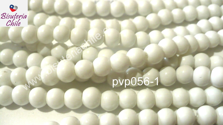 Perla de vidrio blanco, 6 mm, tira de 70 perlas