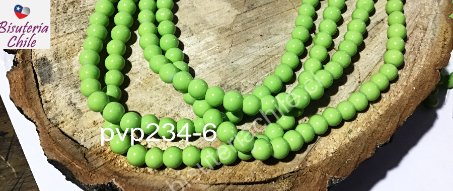 Perla de vidrio verde limón de 6 mm, tira de 72 perlas aprox: