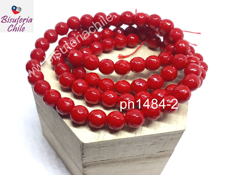 Piedra Agata de 8 mm en tono rojo, tira de 46 piedras aprox
