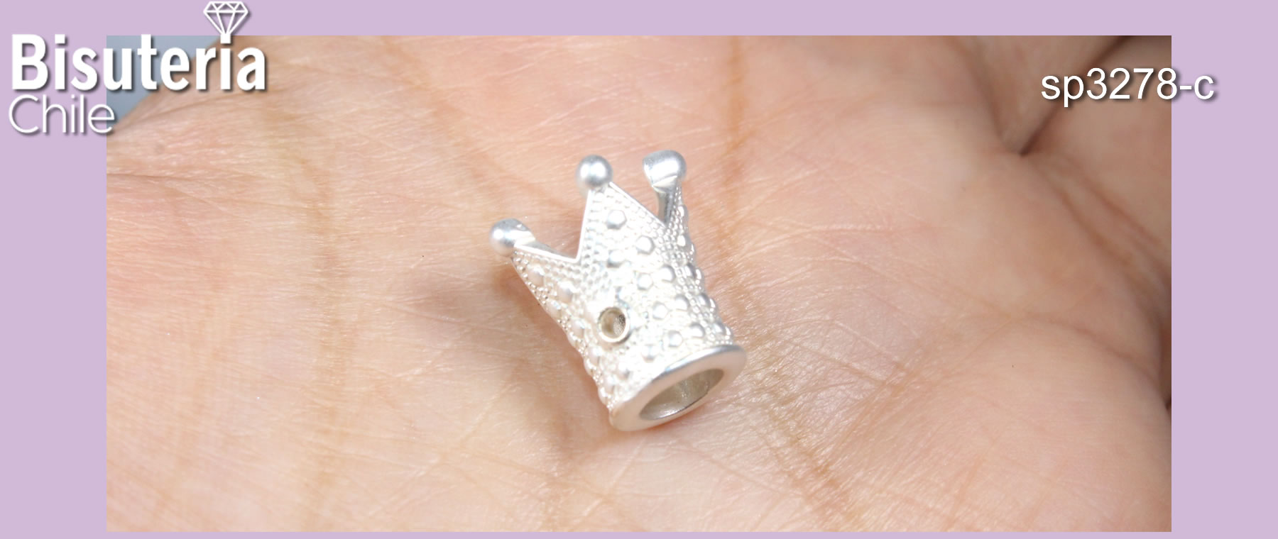 Separador baño de plata mate en forma de corona, 14 x 12 mm, por unidad